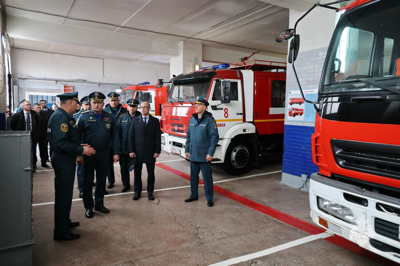 Министр также оценил готовность пожарно-спасательного подразделения, стоящего на охране оборонно-промышленных предприятий. 8 пожарная часть ФПС ГПС по Удмуртской Республике (договорная) несет службу на территории охраняемых объектов, выезжает на происшествия по городу. За период своего существования не допущено ни одного серьезного происшествия.